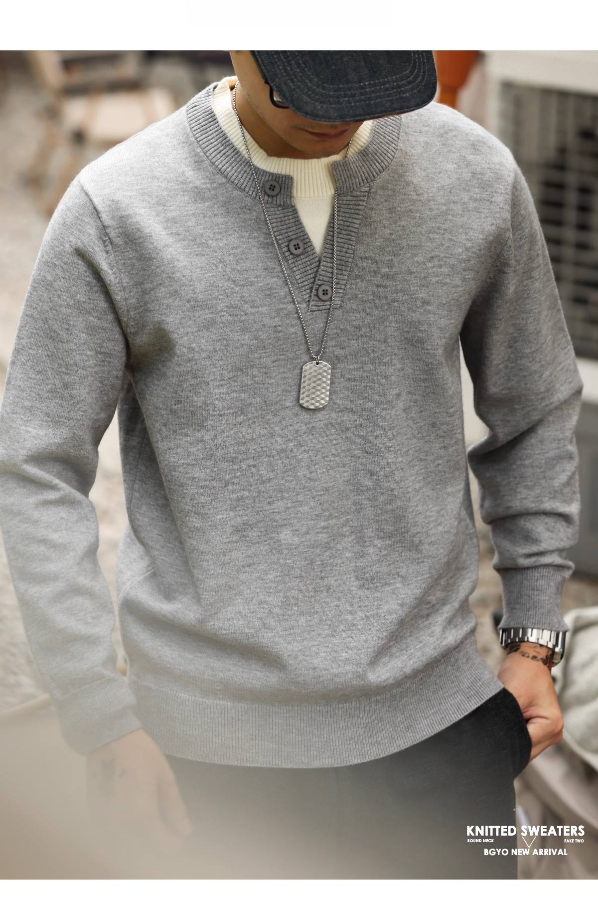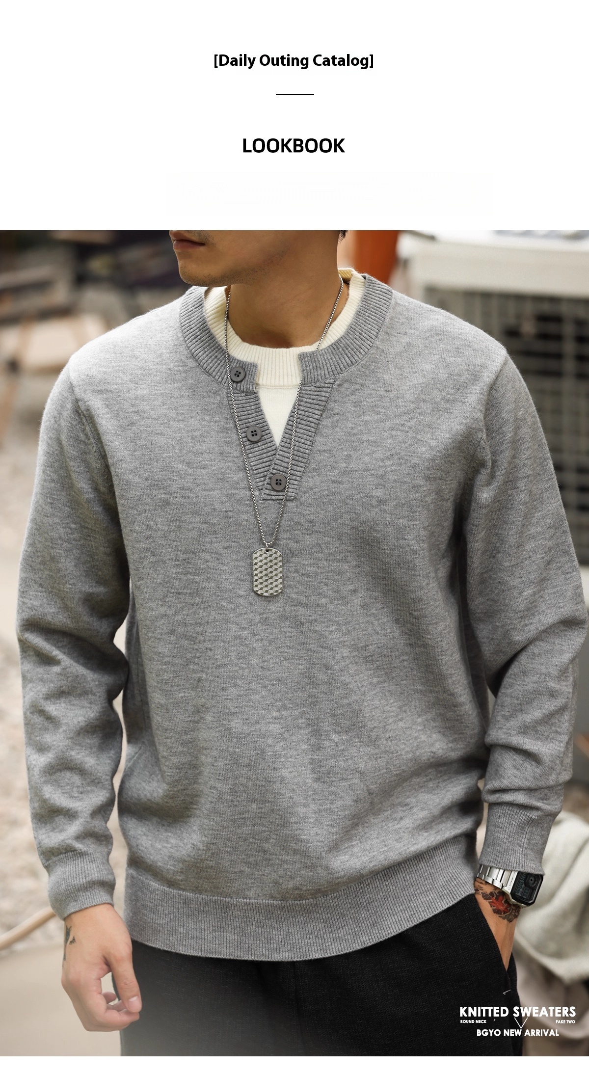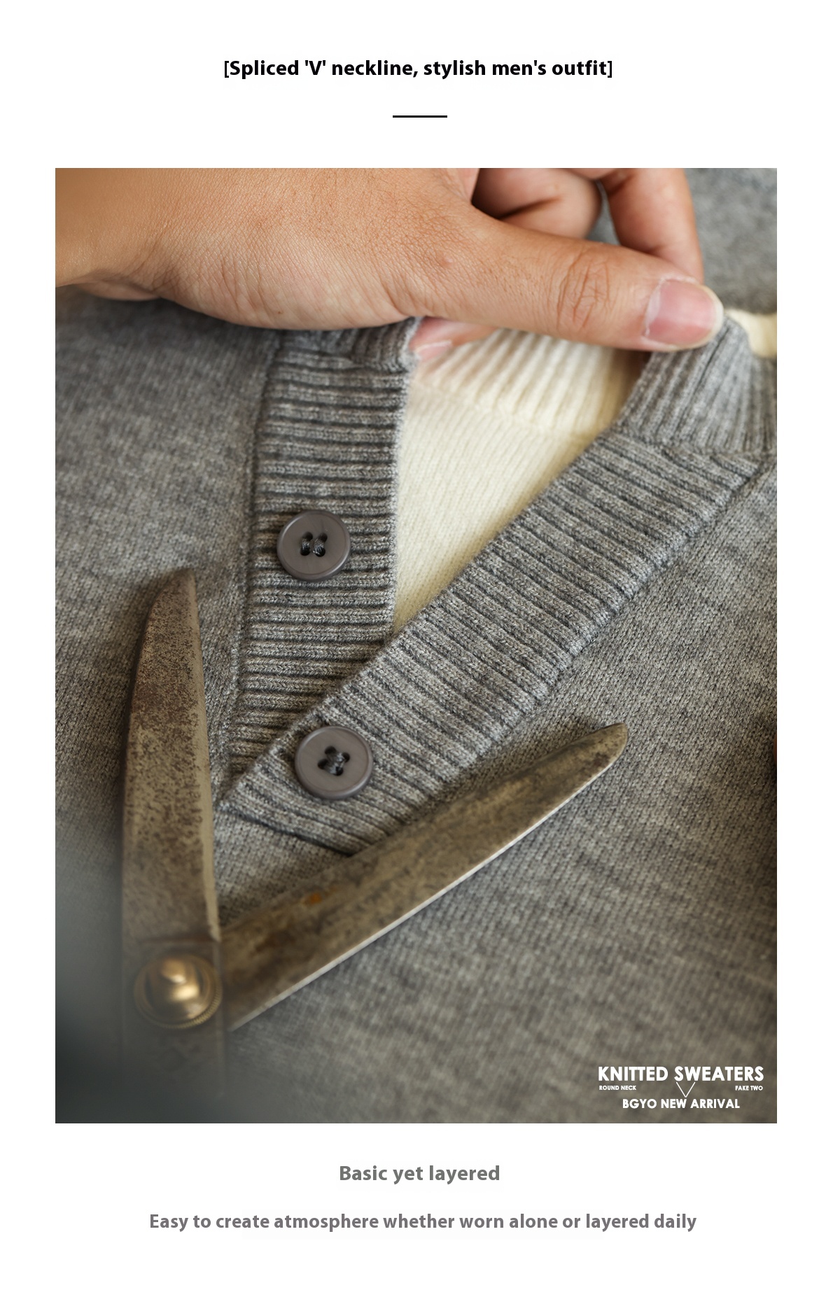 American Casual Vacation Two Piece Spliced V-Neck Men'S Wool T-shirts