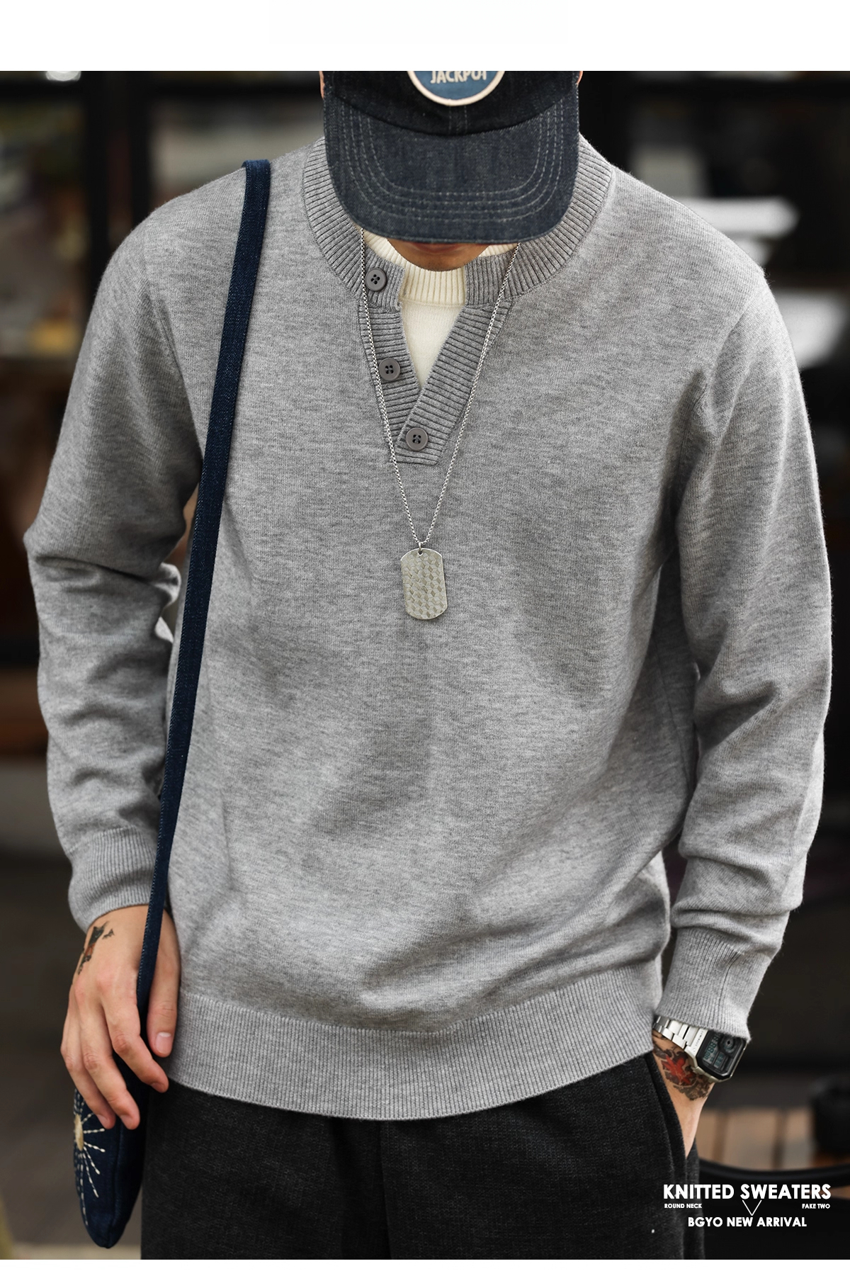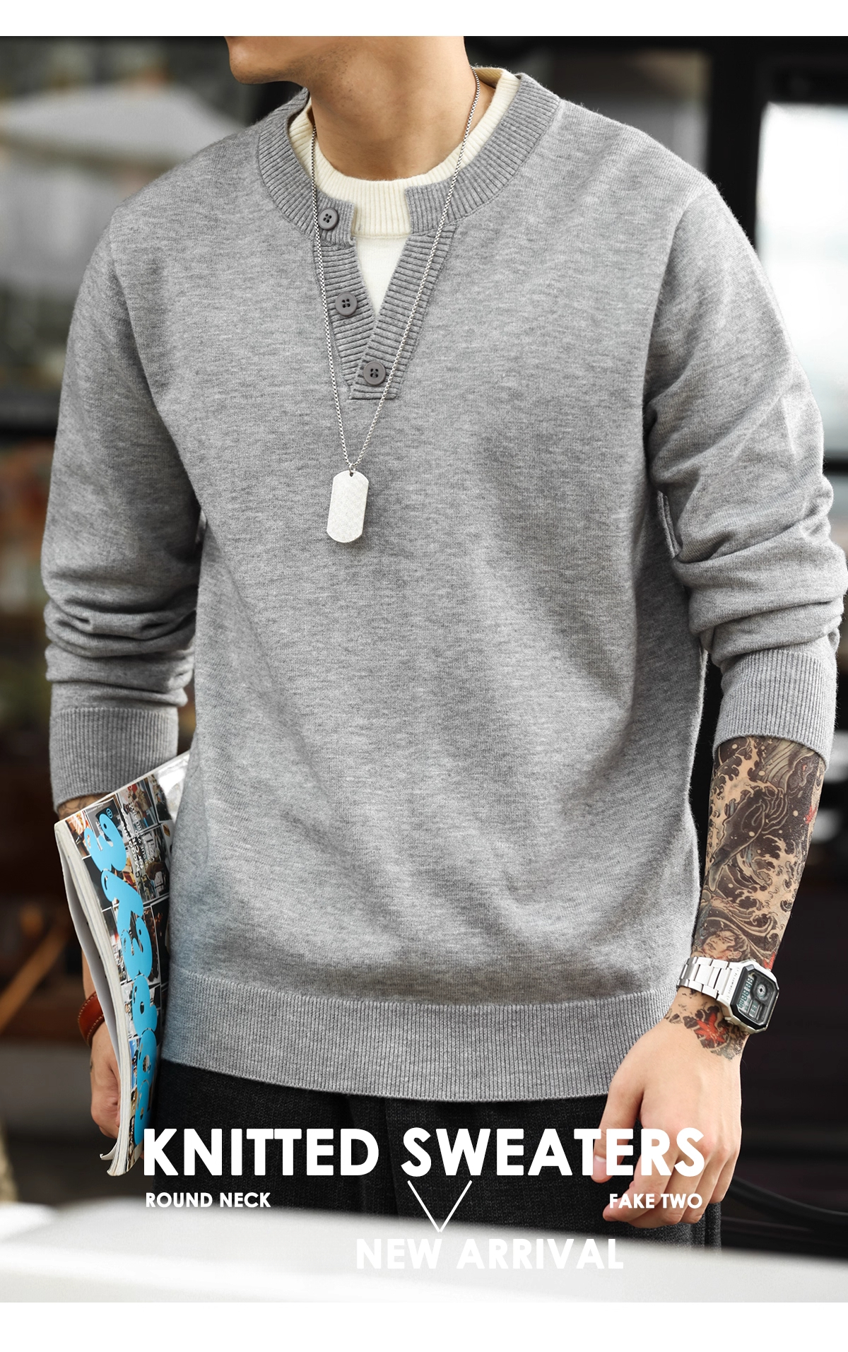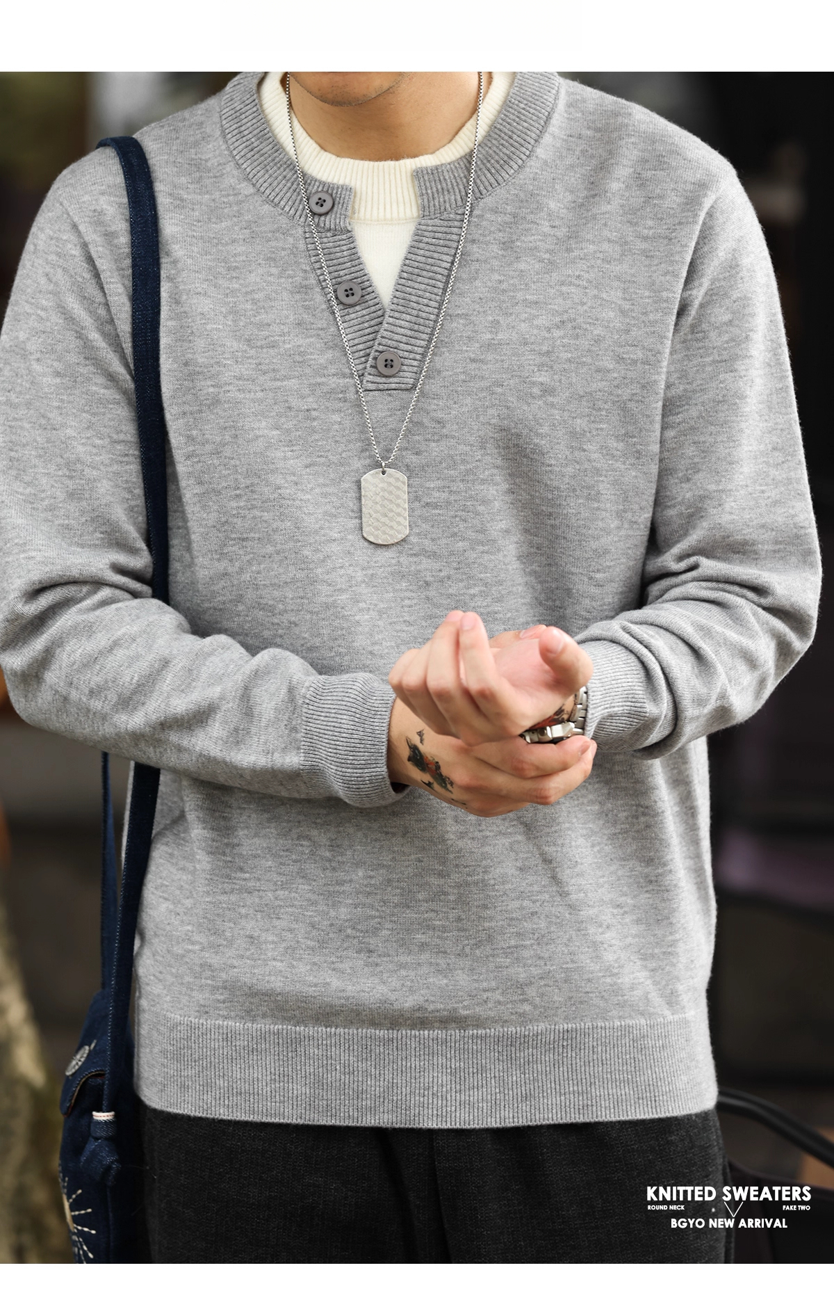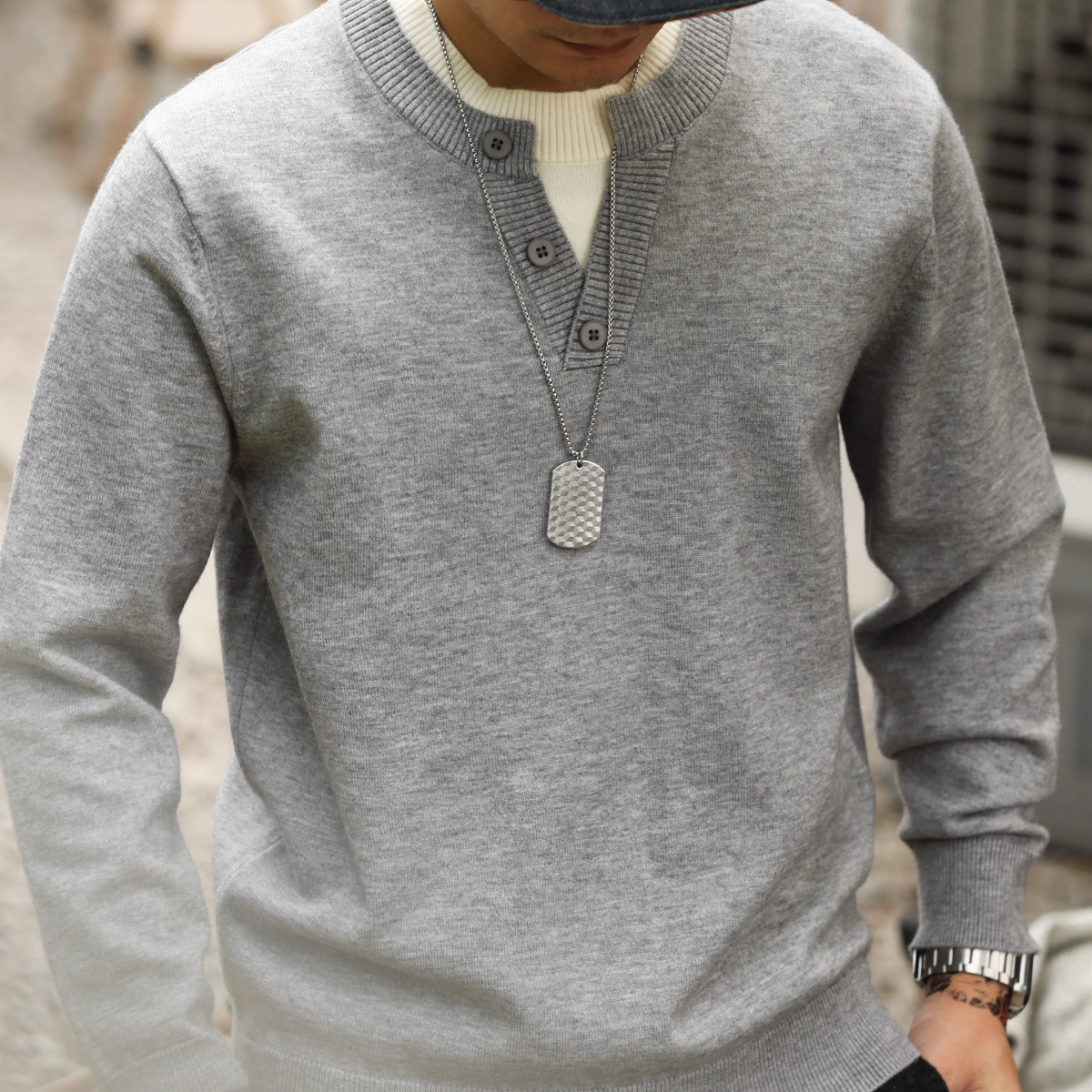 American Casual Vacation Two Piece Spliced V-Neck Men'S Wool T-shirts