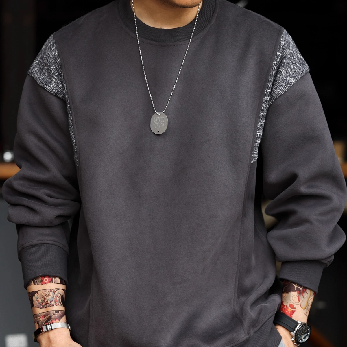 Autumn American Retro Round Neck Men's 420g Casual Top